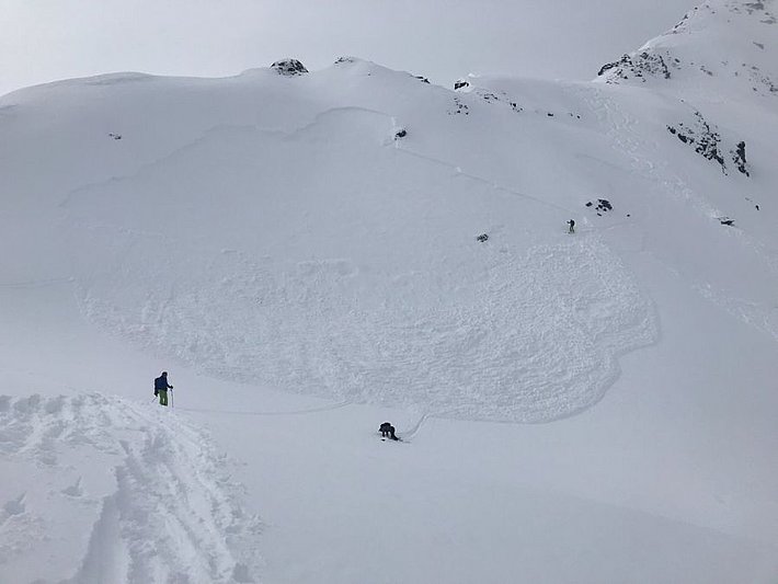 Neige soufflée sur substrat défavorable, nombreux déclenchements d’avalanches ¶