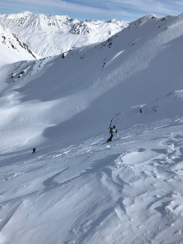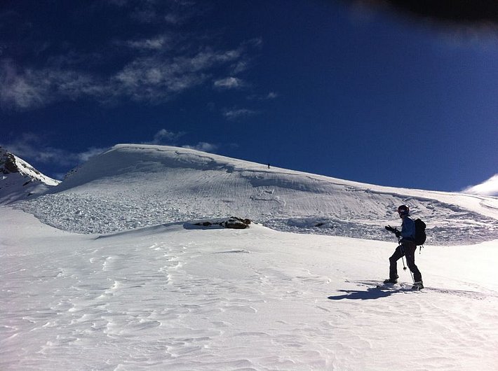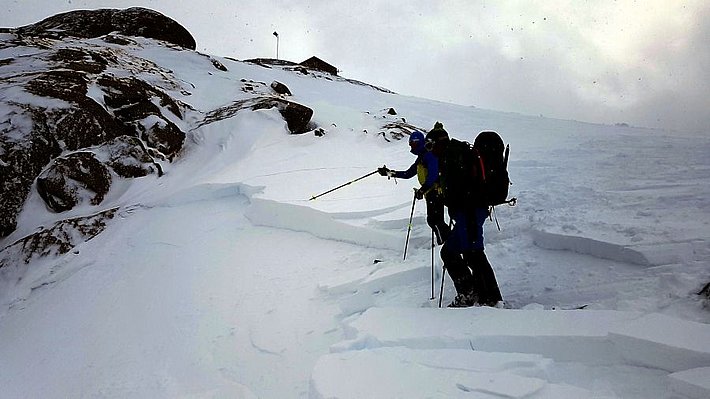Avant cette période examinée par le rapport hebdomadaire, la surface neigeuse était souvent meuble et couverte de neige ayant subi une métamorphose constructive à grains anguleux ou de givre de surface, tout particulièrement sur les pentes abritées du vent (voir le dernier rapport hebdomadaire). Sous l'influence du vent et de la neige fraîche, de nouvelles accumulations de neige soufflée se sont formées quotidiennement du vendredi 2 mars au dimanche 4 mars. Plus particulièrement sur les pentes aux expositions ouest, nord et est, elles se trouvaient sur une surface défavorable mentionnée précédemment et pouvaient se décrocher très facilement. Des signaux de danger tels que des fissures ou des bruits sourds et des déclenchements à distance étaient souvent signalés, autant d'indications évidentes d'un risque élevé de déclenchement d'avalanches (cf. photo 4). Simultanément, des accumulations de neige soufflée déjà un peu plus anciennes étaient constamment couvertes de neige et dès lors difficiles à reconnaître. Elles demeuraient toutefois fragiles.
