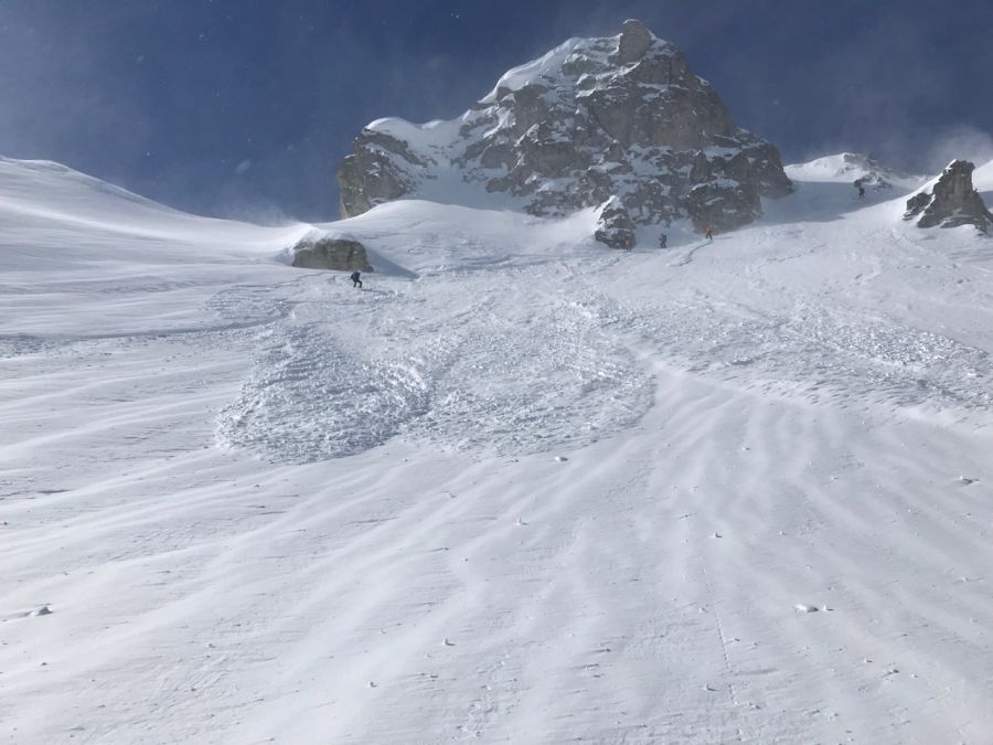 Neige soufflée sur substrat défavorable, nombreux déclenchements d’avalanches ¶