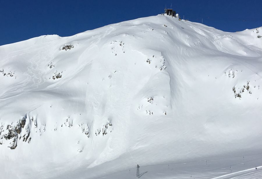 Avant cette période examinée par le rapport hebdomadaire, la surface neigeuse était souvent meuble et couverte de neige ayant subi une métamorphose constructive à grains anguleux ou de givre de surface, tout particulièrement sur les pentes abritées du vent (voir le dernier rapport hebdomadaire). Sous l'influence du vent et de la neige fraîche, de nouvelles accumulations de neige soufflée se sont formées quotidiennement du vendredi 2 mars au dimanche 4 mars. Plus particulièrement sur les pentes aux expositions ouest, nord et est, elles se trouvaient sur une surface défavorable mentionnée précédemment et pouvaient se décrocher très facilement. Des signaux de danger tels que des fissures ou des bruits sourds et des déclenchements à distance étaient souvent signalés, autant d'indications évidentes d'un risque élevé de déclenchement d'avalanches (cf. photo 4). Simultanément, des accumulations de neige soufflée déjà un peu plus anciennes étaient constamment couvertes de neige et dès lors difficiles à reconnaître. Elles demeuraient toutefois fragiles.
