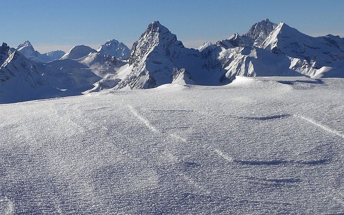La semaine était très contrastée: D’abord des conditions idéales pour les randonnées avec une situation avalancheuse le plus souvent favorable, et à la fin un vent soufflant en tempête, beaucoup de neige fraîche et fort danger d’avalanche en de nombreux endroits.