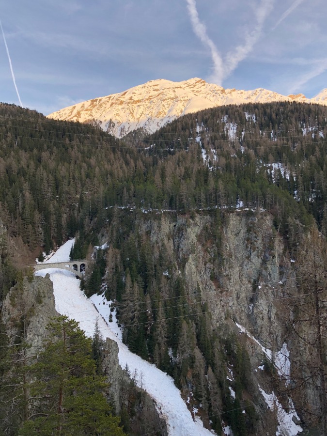 Le samedi était souvent nuageux dans le sud du Valais et dans le nord-ouest du Tessin; ailleurs, le temps était généralement ensoleillé. L'isotherme zéro degré montait, atteignant environ 2500 m dans le nord (cf. figure 1). La poussière du Sahara dans l'atmosphère a donné lieu le dimanche à beaucoup plus de nuages que prévu (MeteoSuisse Blog, en allemand); seul l'extrême ouest bénéficiait d'un temps vraiment ensoleillé. Il y a eu de faibles précipitations à partir du sud-est avec une limite des chutes de neige au-dessus de 2000 m. La phase de foehn a pris fin dans la nuit du dimanche au lundi, le vent s'est alors orienté au nord et était faible à modéré. Pendant la journée, les précipitations ont diminué, mais le ciel est resté généralement nuageux. Le sud et le sud du Haut-Valais bénéficiaient d'éclaircies. Entre dimanche midi et lundi midi, il est tombé de 10 à 20 cm de neige au-dessus de 2500 m environ en Haute-Engadine au sud de l'Inn, dans la vallée de Poschiavo, en Basse-Engadine et dans le Val Müstair; ailleurs, l'apport de neige était localement de quelques centimètres.