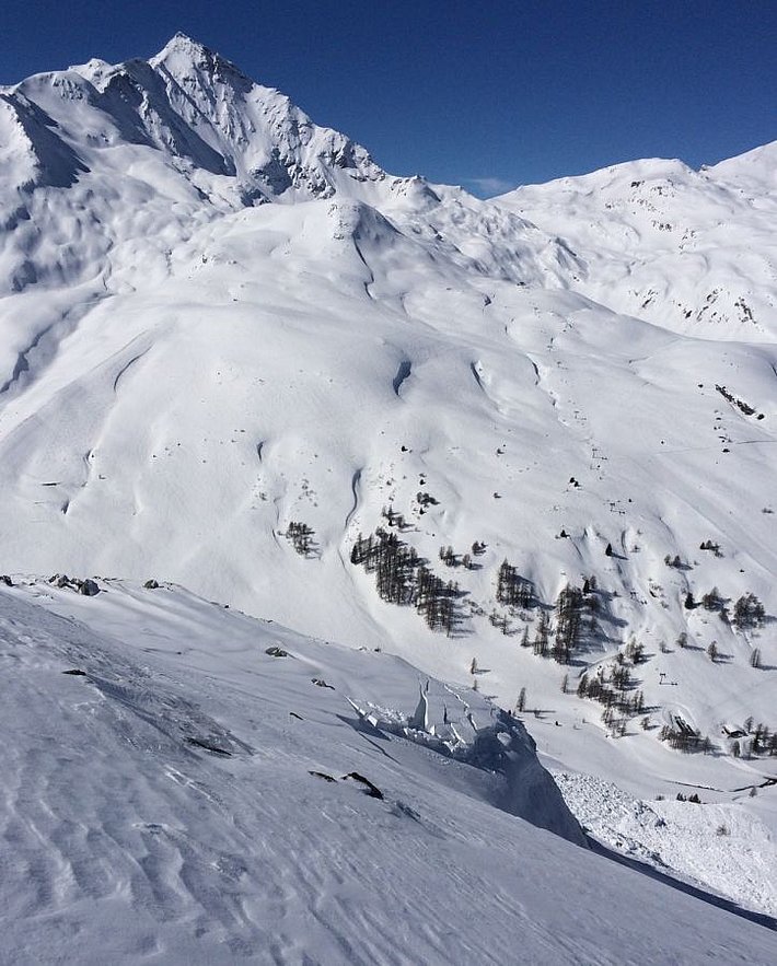 La neige fraîche a été transportée d’abord par le vent de secteur sud, puis dans le courant de la semaine, par le vent fort à tempétueux de secteur nord à nord-est. Il y avait beaucoup de neige meuble susceptible d’être transportée, au début dans le sud et dans l’ouest, puis par la suite également dans le nord (cf. galerie de photos) et les accumulations de neige soufflée pouvaient se décrocher facilement (cf. photo 3).