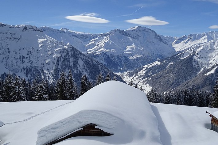Pendant la nuit du dimanche au lundi, un vent du nord modéré à fort s’est mis à souffler sur la crête principale des Alpes et au sud de celle-ci. Les chutes de neige cessaient dans le sud et la journée était partiellement ensoleillée dans l’ouest et le sud. Ailleurs, le ciel était généralement nuageux et il est tombé quelques centimètres de neige jusqu’à basse altitude, et jusqu’à 15 cm dans l’est. Le mardi, la bise s’est renforcée et un vent de secteur nord-est soufflait également en altitude. Un foehn modéré de secteur nord soufflait dans les vallées du sud des Alpes. Sur le versant nord des Alpes, il neigeait localement jusqu’à basse altitude. Le temps était partiellement ensoleillé dans l’ouest et généralement ensoleillé dans le sud. Pendant la nuit du mardi au mercredi, le vent de secteur nord-est était fort à tempétueux sur les crêtes alpines. Le vent a diminué le mercredi. Dans l’ouest et dans le sud, le temps était généralement ensoleillé, tandis que dans le nord, il était généralement nuageux avec localement de faibles chutes de neige. Avec -11 °C dans le nord et -7 °C dans le sud à 2000 m, c’était la journée la plus froide de cette semaine examinée par le rapport hebdomadaire. Du lundi au mercredi, il est tombé de 15 à 25 cm de neige aérée dans le nord, et jusqu’à 50 cm depuis Hasliberg en direction d’Engelberg. Sur le versant sud des Alpes, l’apport de neige était de 5 à 15 cm, et dans l’extrême sud, le temps était resté sec. Après une nuit claire et froide, la journée du jeudi était généralement ensoleillée et moins froide. Le vent de secteur nord était faible à modéré, mais parfois fort en cours de journée sur les crêtes alpines.