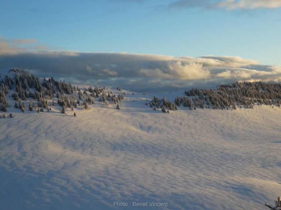 La situation était un peu plus favorable dans l’extrême sud, où le temps était resté pratiquement sec et où le danger principal résidait dans les accumulations fraîches de neige soufflée formées sous l’action du vent parfois fort.