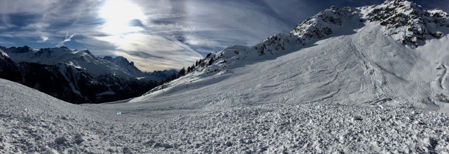 La fenêtre de beau temps a été mise à profit pour mener des actions de sécurisation. Les résultats des opérations de minage étaient contrastés. Les accumulations de neige soufflée formées le jeudi 28 décembre par le vent tempétueux de secteur nord-ouest étaient souvent si dures qu’on ne pouvait guère provoquer leur décrochement. On a constaté quelques avalanches spontanées qui s’étaient vraisemblablement produites le jeudi ou dans la nuit du jeudi au vendredi. Quelques avalanches de glissement ont également été signalées (cf. photo 2).