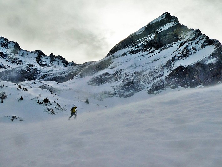 Le week-end était assez ensoleillé malgré la présence de nuages élevés. Grâce à la neige fraîche, les conditions de randonnées étaient bonnes en de nombreux endroits (cf. la seconde série de photos). Certes, il y avait de la neige soufflée facilement reconnaissable, mais son décrochement ne pouvait guère être provoqué par des personnes.