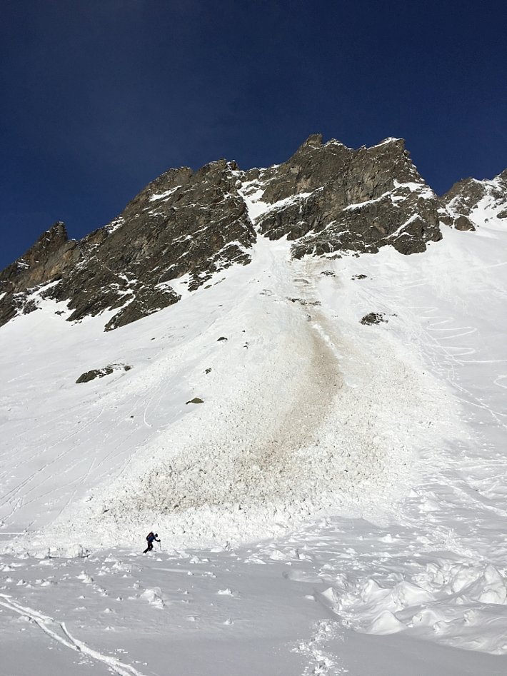 L’activité d’avalanches de glissement était sensiblement plus faible qu’au cours des deux semaines précédentes. Pour les randonneurs, les avalanches de glissement demeuraient néanmoins un danger à ne pas sous-estimer, car elles pouvaient atteindre une ampleur dangereuse (cf. photo 4).