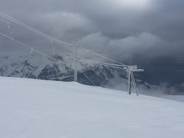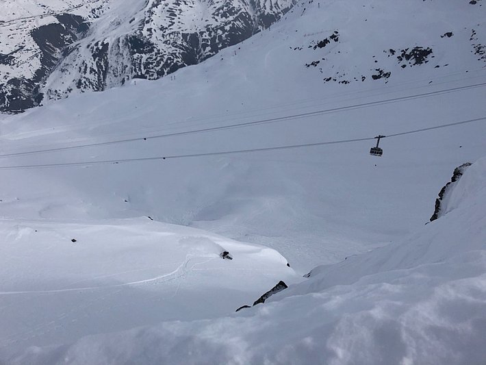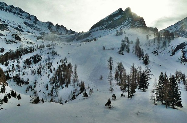 Dans le courant de la journée du dimanche, le vent s’est orienté du secteur ouest au secteur sud-ouest et est devenu fort. L’isotherme zéro degré est montée jusqu’aux alentours de 2500 m. Des accumulations de neige soufflée parfois fragiles, mais généralement petites, s’étaient formées tout particulièrement dans l’ouest.