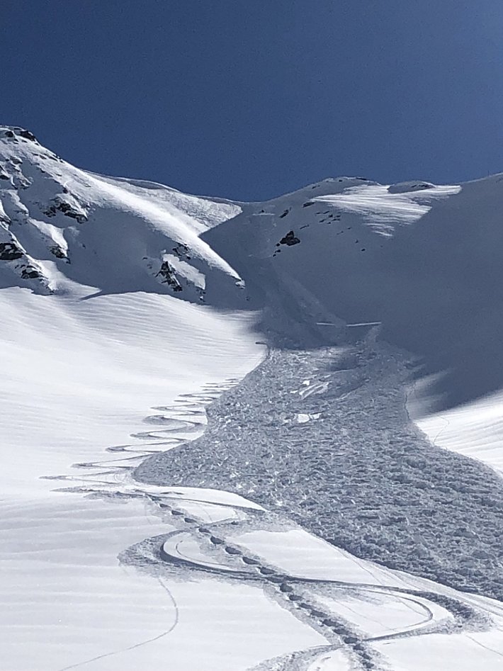 Seulement très peu de déclenchements d’avalanches – spontanés ou par des personnes – ont été signalés. Des avalanches relativement grandes ne se sont produites que très localement (cf. photo 6).