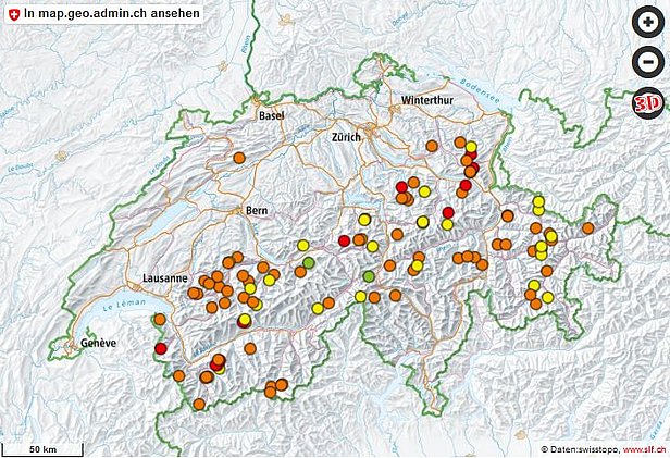 Le SLF enregistre tous les accidents d’avalanche signalés impliquant des personnes, c’est-à-dire toutes les avalanches ayant emporté au moins une personne. Depuis début mars, ces avalanches sont affichées sur une carte et dans un tableau sur le site Internet du SLF (cf. figure 7).