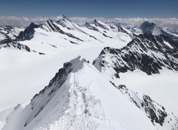 Le jeudi 6 juin, la journée était de plus en plus nuageuse avec de faibles précipitations dans le nord-ouest et le sud. Les vendredi et samedi 7/8 juin étaient ensuite nuageux mais encore largement secs, surtout sur le centre de la crête principale des Alpes et dans le Tessin. Ailleurs, le temps était généralement ensoleillé. L’isotherme zéro degré se situait aux alentours de 3400 m. De bonnes conditions de randonnées (cf. photo 3) prévalaient souvent en haute montagne.