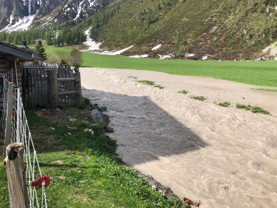 En raison des précipitations intenses, le danger d’avalanche de neige mouillée en dessous de 3200 m et le danger d’avalanche de neige sèche en haute montagne étaient accrus. Un bulletin d’avalanches a été diffusé le 7 et le 10 juin. Quelques avalanches ont été signalées (cf. la série de photos). Sous l’effet de la pluie, le manteau neigeux fondait intensément à moyenne et haute altitude. L’écoulement accru d’eau de fonte combiné aux précipitations a donné lieu à des crues sur une grande partie du territoire et localement à des inondations. Plusieurs rivières alpines ont atteint des niveaux critiques et, dans le Rheintal saint-gallois, le Rhin est sorti de son lit. Des cours d’eau de montagne plus petits ont également atteint brièvement des débits torrentiels sortant localement de leur lit (cf. la série de photos).