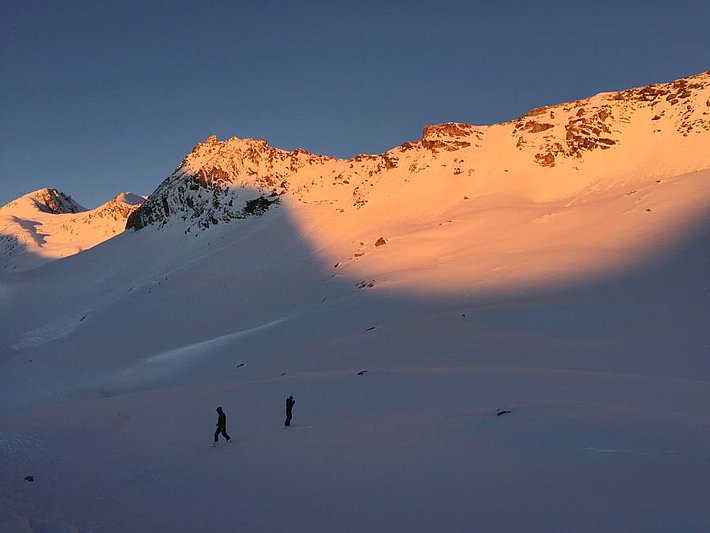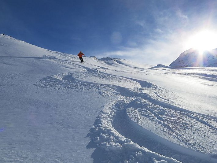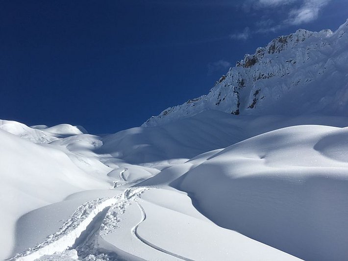 Tout comme en octobre, en novembre également, il a surtout neigé dans le sud. Des avalanches se sont décrochées plus particulièrement dans les couches proches de la surface, touchant dans quelques cas également des personnes. Sur la crête principale des Alpes depuis Zermatt jusque dans la région de la Bernina et au sud de ces régions, il y avait à la fin du mois un épais manteau neigeux stable. Les conditions de randonnées y étaient temporairement bonnes, mais seules quelques journées étaient ensoleillées. Au nord de la crête principale des Alpes, il n’y avait toujours que peu de neige.