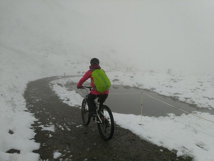 Le jeudi 5 septembre, la situation a sensiblement changé. En cours de journée, des précipitations ont gagné le pays depuis la région du Gothard jusqu’à l’Alpstein. A la mi-journée, la limite des chutes de neige se situait aux alentours de 2700 m. Le vendredi 6 septembre, les précipitations ont touché surtout le versant sud des Alpes, mais elles se sont également étendues vers le nord sur la crête principale des Alpes ainsi que depuis la Suisse centrale jusque dans le centre des Grisons et en Basse-Engadine en passant par les Alpes glaronnaises. L’apport de neige était le plus important dans la région du Gothard et sur le centre du versant sud des Alpes avec de 50 à 80 cm au-dessus de 2500 m environ. Dans la nuit du 5 au 6 septembre, la limite des chutes de neige est descendue jusqu’à moyenne altitude, surtout sur le centre de la crête principale des Alpes, et localement même jusqu’à 1400 m (cf. photo 2). L’A13 a même été fermée brièvement à cause de la neige. Dans les autres régions, la limite des chutes de neige se situait généralement entre 2000 et 2300 m.