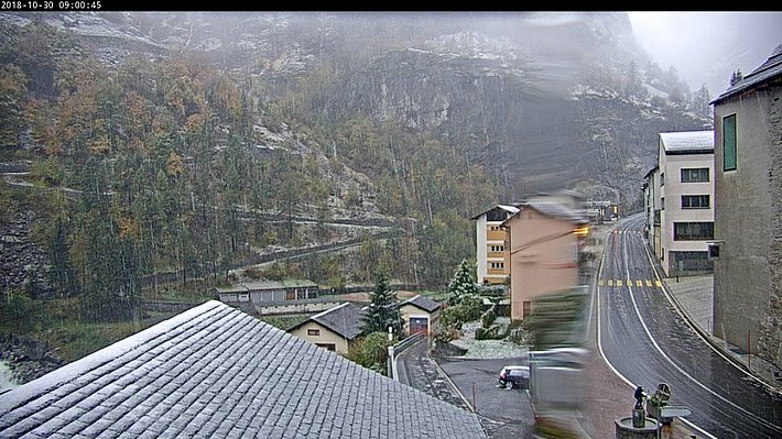 Au cours de la journée du dimanche, les précipitations ont quelque peu diminué et la limite des chutes de neige est montée à environ 2200 m à partir du sud-est. Le lundi 29 octobre, les précipitations étaient à nouveau intenses et continues dans le sud, le cœur des précipitations se situant cette fois dans l’ouest du Tessin et sur la crête principale des Alpes du Haut-Valais. La limite des chutes de neige se situait entre 2000 et 2300 m, et dans l’ouest à 1500 m.