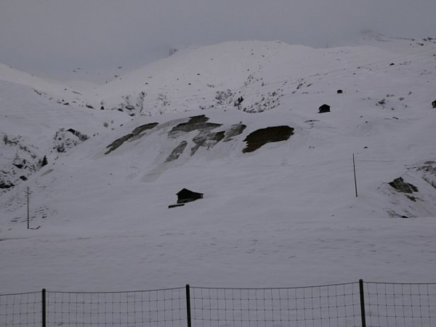 Contrairement au vent, les fortes précipitations n’ont pas provoqué de dommages. Le sol nu avant les chutes de neige avait largement réduit le risque de décrochement d’avalanches de plaque de neige. Si en dépit des fortes chutes de neige et du vent, seules quelques avalanches ont été signalées au Service des avalanches, cela s’explique, d’une part, par l’absence de couche fragile à longue durée de vie, mais aussi par d’autres raisons: Avec une isotherme zéro degré souvent élevée, le risque d’avalanches de neige sèche ne prévalait qu’au-dessus de 2500 à 2800 m environ. De plus, la plupart des domaines skiables étaient encore fermés et tous les observateurs du SLF étaient loin d’avoir commencé leur travail. On peut donc en déduire que des avalanches se sont certes produites, mais qu’elles n’ont pas été observées ni signalées.