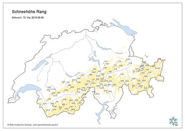 Le dernier bulletin d’avalanches avec carte du danger d’avalanche a été diffusé le lundi 13 mai. Le mardi 14 mai, un bulletin a été diffusé en format texte avec validité jusqu’au jeudi 16 mai. Jusqu’à nouvel ordre, le bulletin d’avalanches est diffusé en format texte et peut, comme d’habitude, être consulté sous www.slf.ch ou via l’appli WhiteRisk. Les mesures enregistrées par les stations automatiques en ce qui concerne la hauteur de neige, la neige fraîche, le vent et la température peuvent être consultées tout au long de l’année sous https://www.slf.ch/de/lawinenbulletin-und-schneesituation/messwerte.html ainsi que via l’appli WhiteRisk.