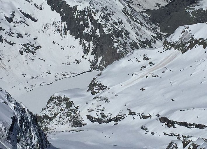À haute altitude et en haute montagne, les conditions neigeuses et avalancheuses demeuraient dès lors hivernales. A la mi-mai, les couches de neige fraîche et de neige soufflée de la deuxième semaine de mai étaient encore susceptibles de se décrocher, surtout en altitude sur les pentes exposées au nord. Sur les pentes exposées au nord, le manteau neigeux était encore sec au-dessus de 2400 m environ. Aux autres expositions et altitudes, le manteau neigeux mouillé se stabilisait pendant les nuits froides, et se ramollissait un peu en surface en cours de journée avec l’ensoleillement. Seules quelques avalanches sporadiques de neige mouillée et de glissement ont été signalées (cf. la série de photos).