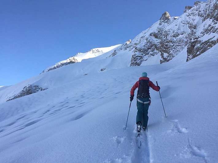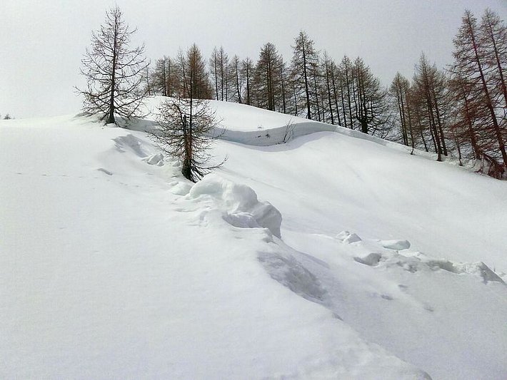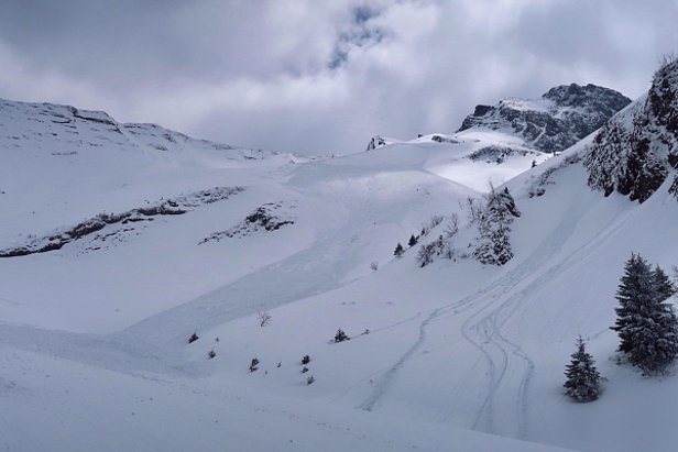 Le vent de secteur ouest à sud-ouest était temporairement fort et transportait surtout la neige fraîche, mais dans les régions de l’est parfois aussi la neige de la période de précipitations précédente. Le danger d’avalanche augmentait et était marqué (degré 3) dans certaines régions de la crête nord des Alpes et du Bas-Valais. Les couches de neige fraîche et de neige soufflée étaient plus particulièrement fragiles. Dans les principales régions de l’ouest touchées par les précipitations, ces couches étaient épaisses. Seules quelques avalanches ont été signalées au SLF (cf. photo 5). Des bruits sourds sporadiques ont été signalés en Valais et dans le val Bedretto. Le samedi, un accident d’avalanche s’est produit dans le Bas-Valais (cf. la section „Accidents d’avalanche“).