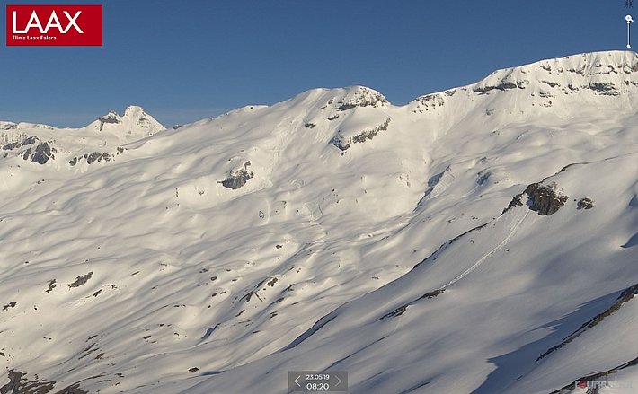 Par la suite, le temps était nuageux jusqu’au lundi 27 mai, avec des éclaircies dans l’ouest et dans le sud. De faibles précipitations sont tombées surtout entre le samedi après-midi 25 mai et le dimanche matin 26 mai. Dans le sud du Valais et dans les Grisons, quelque 10 cm de neige étaient tombés au-dessus de 2600 m environ. Pendant les nuits généralement couvertes, les conditions de rayonnement étaient défavorables. En raison des températures plutôt basses avec une isotherme zéro degré aux alentours de 2700 m, l’activité d’avalanches de neige mouillée était toutefois néanmoins plutôt faible.