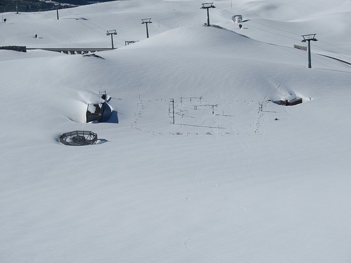 Fin mai, les hauteurs de neige à haute altitude étaient exceptionnelles. Au Weissfluhjoch, un nouveau record absolu était enregistré pour l‘équivalent en eau de la neige. La valeur mesurée de 1313 mm signifie que l’on obtient une colonne d’eau de 1313 mm, si l’on fait fondre toute la hauteur de neige, ou en d’autres termes: sur chaque mètre carré, il y a 1313 kg de neige. Le record antérieur de 1280 mm datait du 15 mai 1945.