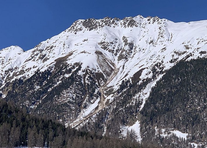 Pendant cette période, tout comme déjà pendant la période précédente couverte par le rapport hebdomadaire, les avalanches de glissement constituaient le danger principal (cf. photo 4 et vidéo 5). Malgré le nouveau réchauffement sensible du temps (cf. figure 1) et l’ensoleillement, il y a eu moins d’avalanches de glissement qu’annoncé dans les prévisions. Elles se sont essentiellement décrochées sur des pentes raides exposées au sud, dans l’ouest en dessous de 3000 m, dans l’est et le sud en dessous de 2600 m environ. Localement, on a également signalé des fissures de glissement et des avalanches de glissement sur des pentes exposées au nord en dessous de 2000 m environ. En raison du temps doux et de l’ensoleillement, les avalanches de glissement étaient soumises à une certaine augmentation en cours de journée. Cela signifie que la plupart des avalanches se sont déclenchées au cours de la seconde moitié de la journée, mais parfois aussi pendant la nuit ou la matinée. Au cours de la période examinée, l’activité avalancheuse n’a pas changé de manière significative et elle était même un peu plus faible que pendant la période précédente. Environ la moitié des avalanches enregistrées étaient petites (taille 1), quelque 40 % étaient moyennes (taille 2), près de 10 % étaient grandes (taille 3) et une avalanche était très grande (taille 4).