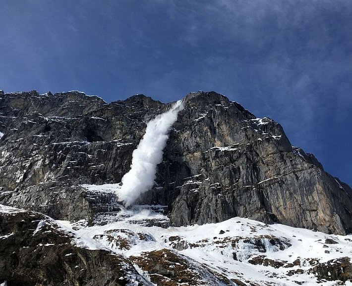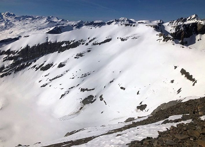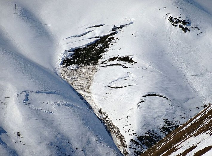 On a observé nettement moins d’avalanches de neige mouillée que d’avalanches de glissement et elles se sont surtout décrochées comme coulées de neige meuble en terrain extrêmement raide percé de rochers. C’est la raison pour laquelle elles ne sont pas reprises comme problème avalancheux dans le bulletin d’avalanches, mais seulement mentionnées dans la description du danger.