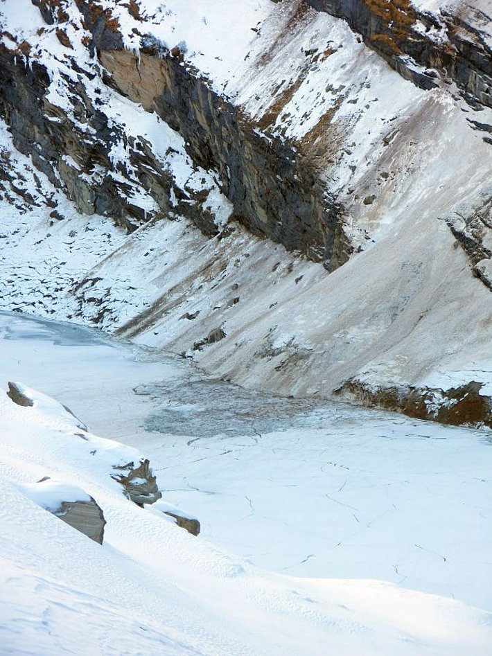 Déjà comme au printemps: Les températures vraiment douces ont surtout eu leur effet sur les pentes raides exposées au sud. Pendant la journée, la neige s’y transformait en neige gros sel sous l’effet de l’ensoleillement. Des pénitents de neige se formaient en de nombreux endroits en raison de la faible humidité de l’air (cf. figure 2). Pendant la nuit, une croûte portante se formait jusqu’en haute montagne.
