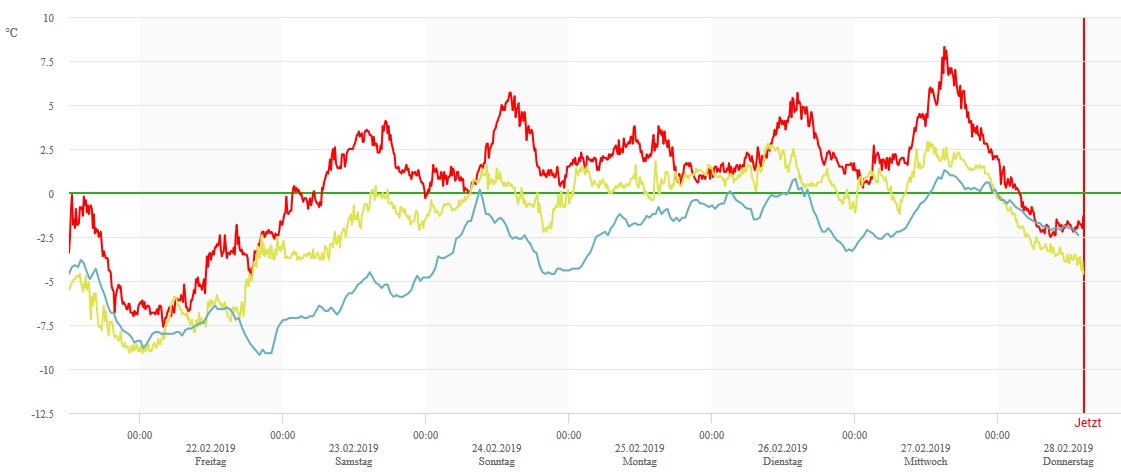 Grâce à l’anticyclone „Frauke“, le temps ensoleillé et doux de la période précédente couverte par le rapport hebdomadaire a également persisté pendant cette période. Les températures de l’air étaient même encore plus élevées que la semaine précédente. Tout au long de la période, il faisait plus doux dans l’ouest que dans l’est (cf. figure 1). A partir du samedi 23 février, l’isotherme zéro degré se situait nettement au-dessus de 3000 m dans l’ouest (à environ 3600 m) et aux alentours de 3000 m dans l’est.