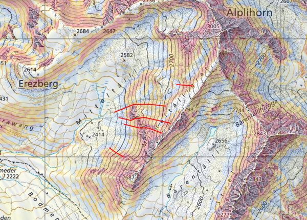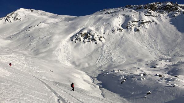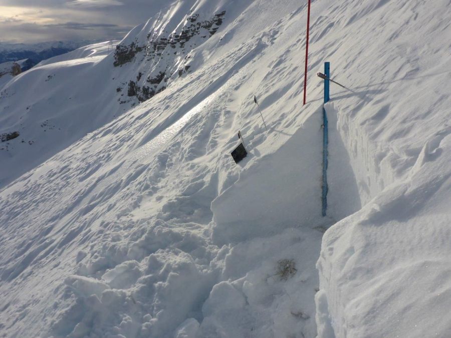 Avec un temps hivernal ensoleillé et doux – l’isotherme zéro degré se situant à près de 3000 m (cf. figure 1) – de bonnes conditions de randonnées prévalaient en de nombreux endroits en montagne. La situation avalancheuse était également de la partie; ce n’était que dans le sud du Valais et dans les Grisons que l’on prévoyait encore, le vendredi, un danger marqué d’avalanche (degré 3) en raison du problème lié à la neige ancienne (voir le rapport hebdomadaire de la semaine précédente). Mais, même dans ces régions, on n’a pratiquement plus signalé de déclenchements d’avalanches (cf. photo 2). Malgré le temps doux, il n’y a eu que quelques avalanches de glissement de taille petite ou moyenne.