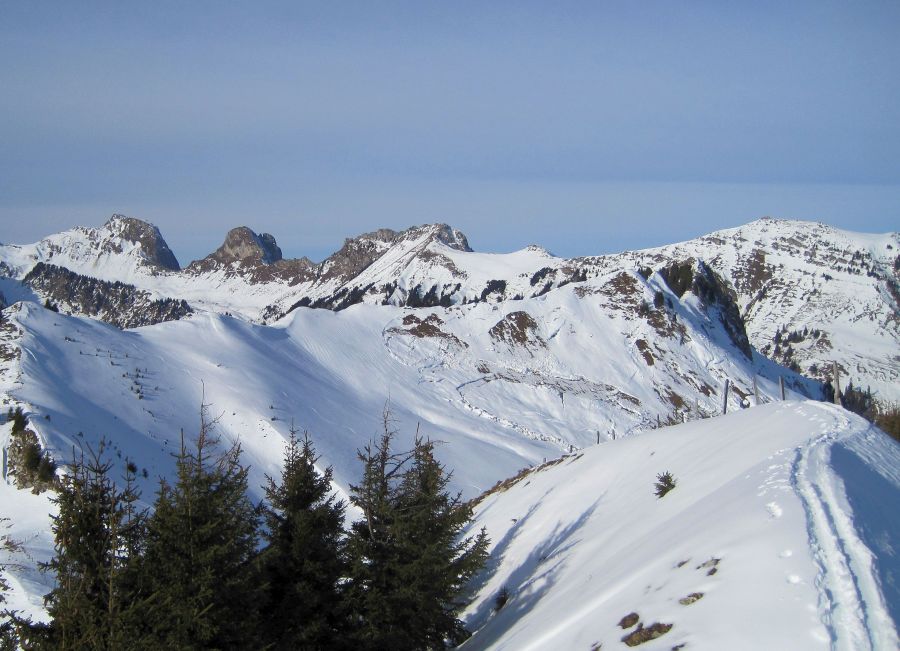 En montagne, la nouvelle année a débuté avec une météo superbe: le ciel bleu éclatant et les températures douces invitaient à la pratique des sports de neige. Un vent modéré de secteur nord soufflait en altitude. Sous l’effet de l’isotherme zéro degré à nouveau élevé (cf. photo 2 ci-dessus) et de l’ensoleillement, la surface neigeuse s’est humidifiée sur les pentes exposées au sud et il y a eu quelques coulées de neige humide. Malgré le grand nombre de randonneurs empruntant parfois aussi des parcours très raides, aucun déclenchement d’avalanche par des personnes n’a été signalé – assurément un signe que la situation avalancheuse était assez bonne.