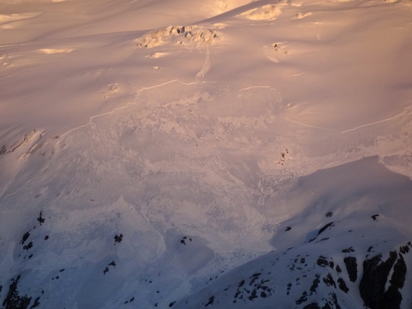 En haute montagne, les conditions de randonnées étaient à chaque fois assez bonnes le matin. Localement, la couche fragile de la semaine précédente était cependant encore susceptible de se décrocher (cf. photo 5). Deux déclenchements d’avalanches par des personnes et ayant entraîné des randonneurs à ski ont été signalés. Heureusement, ces avalanches n’ont pas eu de conséquences.
