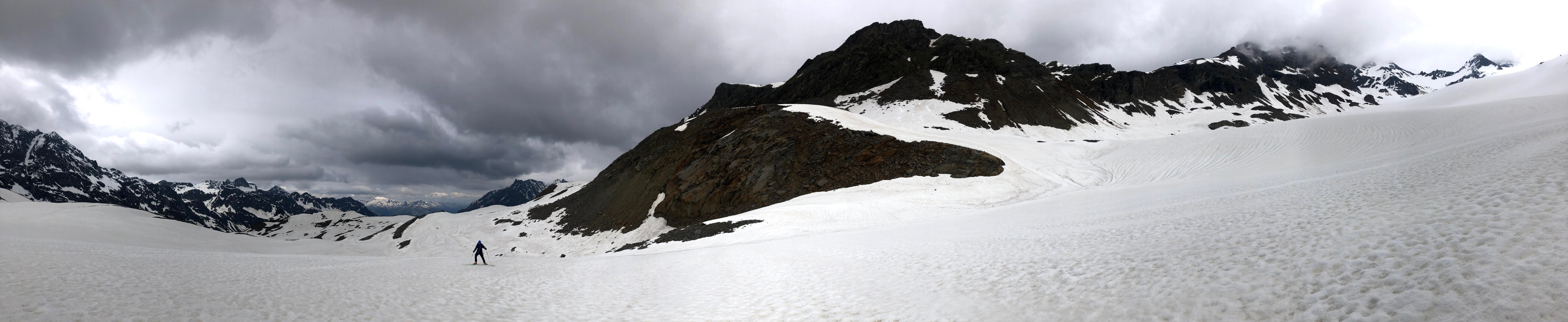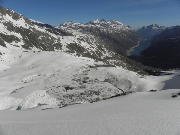 Les nuits n’étaient que partiellement claires, de sorte qu’à haute altitude, la surface neigeuse ne gelait pas toujours assez pour devenir portante. En haute montagne, les conditions de randonnées étaient en revanche souvent bonnes le matin (cf. photo 8).