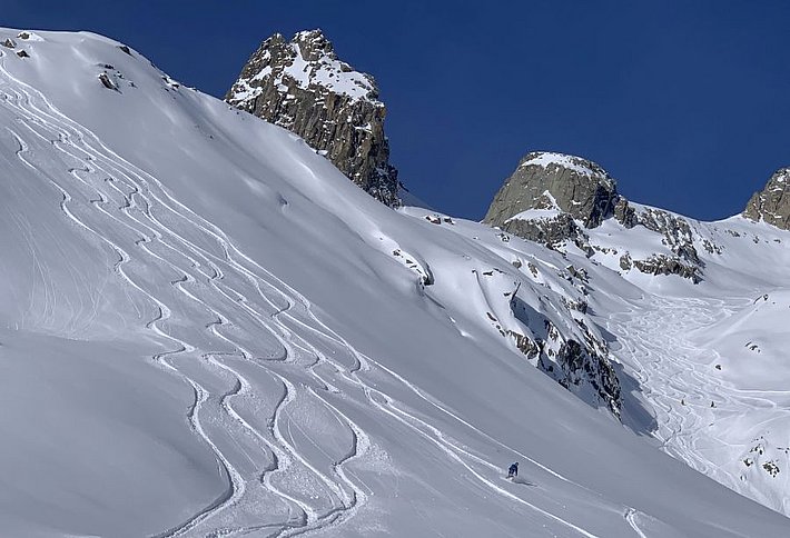 La météo assez calme de ces quatre dernières semaines était toujours d'actualité. Avec un mélange de soleil et de nuages et un vent seulement temporairement modéré, la situation avalancheuse n'avait, elle non plus, pratiquement pas changé: