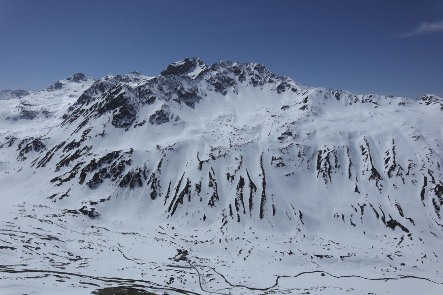 Les pentes orientées à l’est et à l’ouest étaient déjà humidifiées depuis plus longtemps en dessous de 3000 m environ et les pentes exposées au sud en dessous de 3200 m environ, et la neige y avait entièrement disparu jusqu’à des altitudes de 2000 à 2400 m.