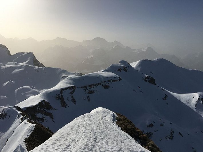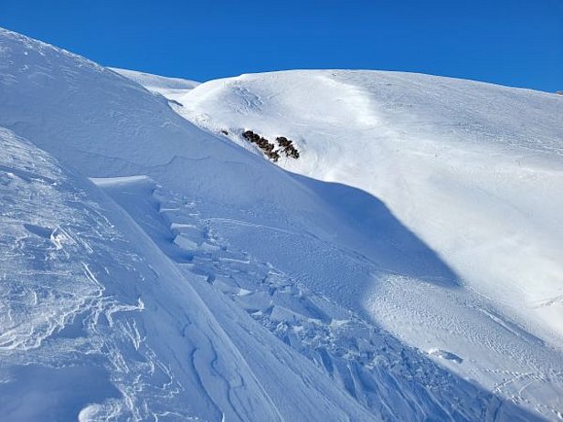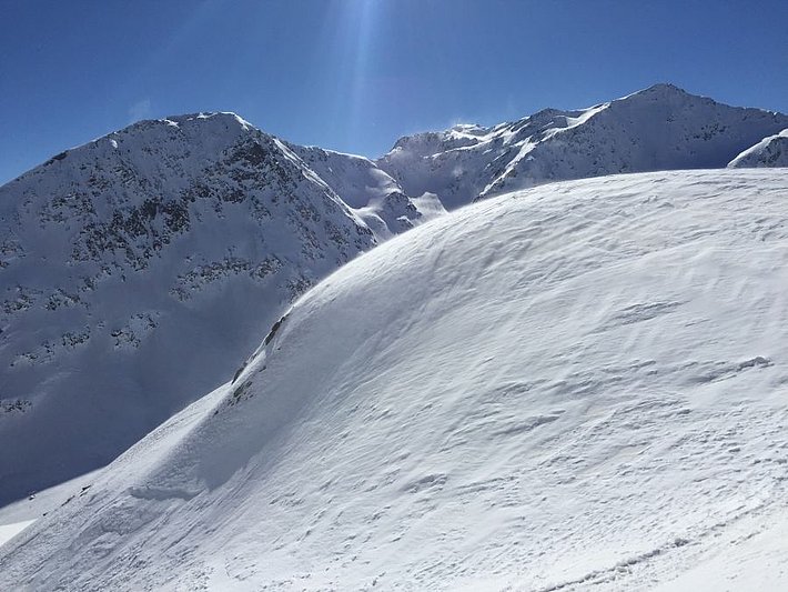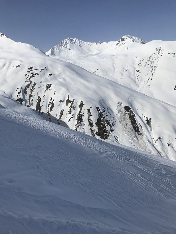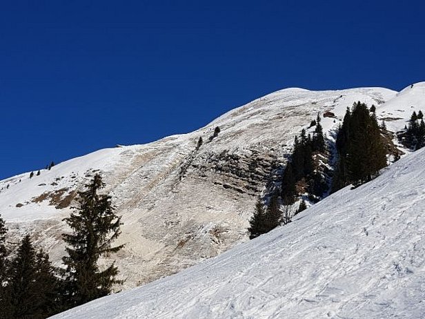 Le vent du sud, qui soufflait parfois en tempête le dimanche et le lundi, ne transportait pas seulement de la poussière du Sahara, mais en de nombreux endroits également la dernière neige encore meuble. Il donnait lieu localement à la formation d’accumulations de neige soufflée généralement petites, mais pouvant temporairement se décrocher. Quelques petites avalanches ont été déclenchées par des personnes (cf. photo 4) ou se sont sporadiquement décrochées spontanément.