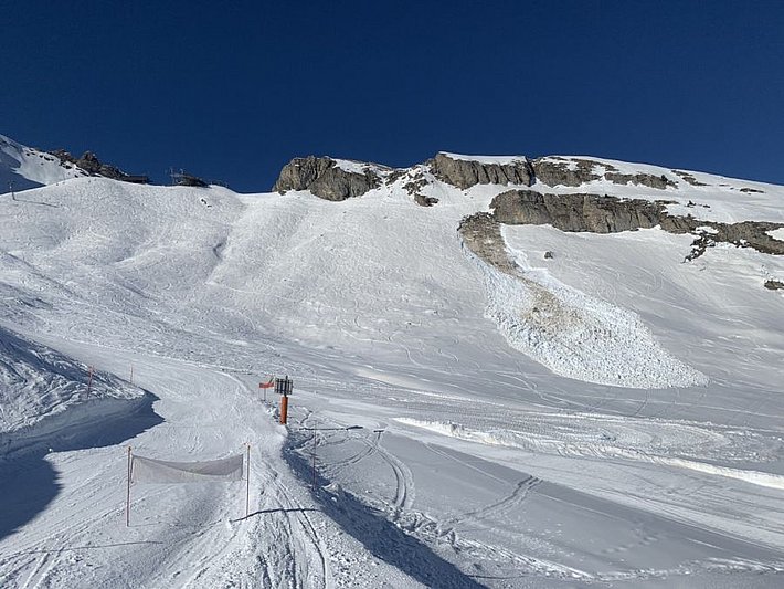 Les avalanches de glissement ont nettement augmenté sur les pentes ensoleillées. Pendant la seconde moitié de la période couverte par le rapport, de nombreuses avalanches de plaque de neige mouillée se sont décrochées, d’abord principalement sur les pentes exposées au sud. Sporadiquement, ces avalanches étaient également déclenchées par des personnes (cf. série de photos/photo 1).