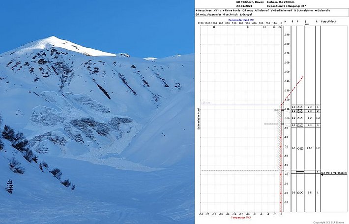 Cette différenciation dans l’évaluation du danger se fonde surtout sur les observations d’avalanches. De nombreuses avalanches ont été signalées directement après leur décrochement par les observateurs du SLF ou par des particuliers via www.slf.ch ou l’appli WhiteRisk. Nous vous remercions vivement pour les nombreux retours d’information quasiment en temps réel. Ils jouent un rôle important dans la qualité de nos bulletins d’avalanches et autres prévisions.