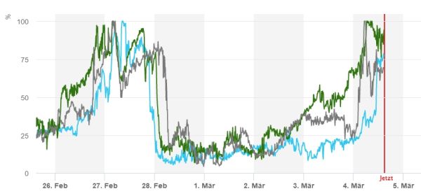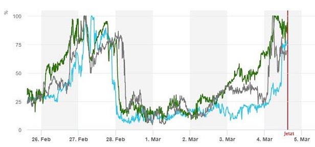 La nuit du mardi au mercredi était claire dans l’est, mais seulement partiellement claire dans l’ouest. En journée, le ciel était couvert dans toutes les régions. La cause de la nébulosité était un nouvel acheminement de poussière provenant du Sahara (le troisième épisode en février après ceux du samedi 6 février et du lundi 22 février). Après des éclaircies pendant la nuit du mercredi au jeudi, il y a eu en journée des passages ensoleillés relativement longs en Valais et dans la région du Gothard, tandis qu’ailleurs le temps était nuageux avec des éclaircies. De faibles précipitations sont tombées dans certaines régions du nord.
