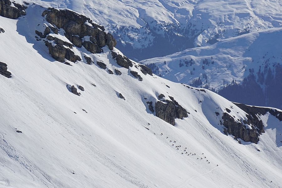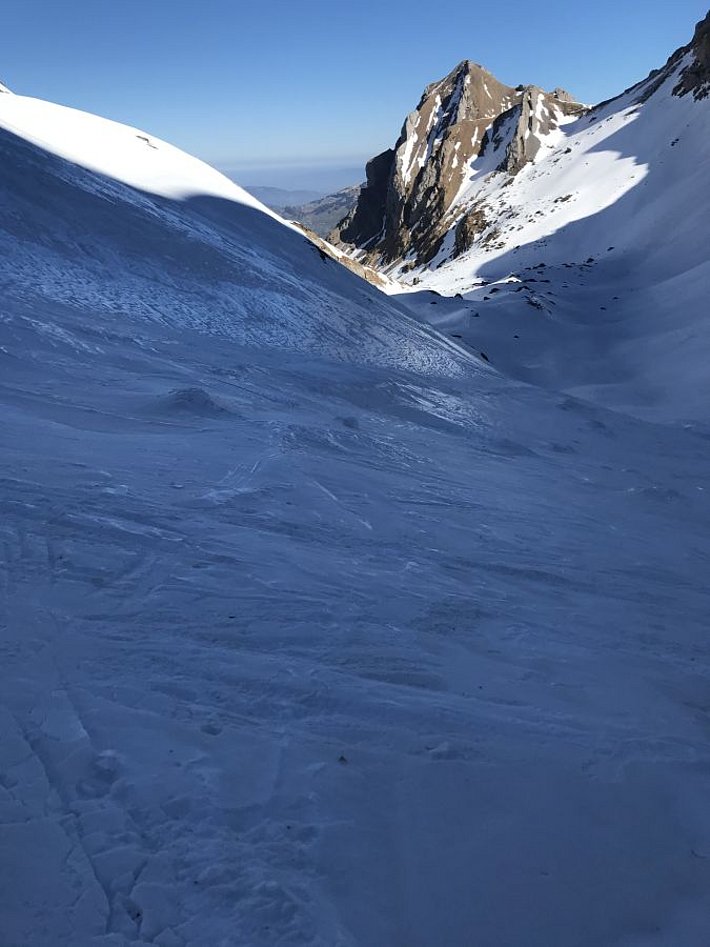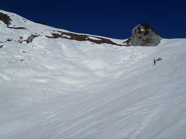 Le problème lié à la neige ancienne était certes encore présent dans le sud du Valais et dans les Grisons, mais le manteau neigeux n’avait plus guère tendance à provoquer et à propager les ruptures. Toutefois lorsque les couches proches de la surface ou du sol devenaient humides, des avalanches de plaque de neige mouillée pouvaient être déclenchées. Quelques déclenchements de ce type d’avalanche par des personnes ont été signalés le samedi 27 et le dimanche 28 février (cf. photo 6).