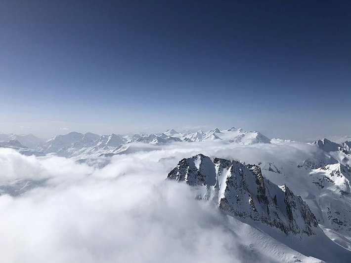 Les journées du lundi et du mardi étaient marquées par un soleil éclatant. Grâce à une faible humidité de l’air (cf. figure 2 et photo 3), la visibilité était excellente. Il faisait à nouveau un peu plus doux et, en journée, l’isotherme zéro degré grimpait légèrement au-dessus de 2500 m. Le vent était faible à modéré de secteur sud-est.