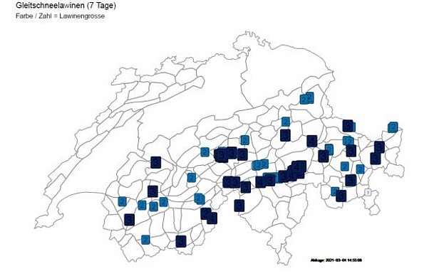 Les avalanches de glissement augmentaient en cours de journée et étaient dès lors mentionnées dans le bulletin d’avalanches par les termes «avalanches de neige mouillée en cours de journée».