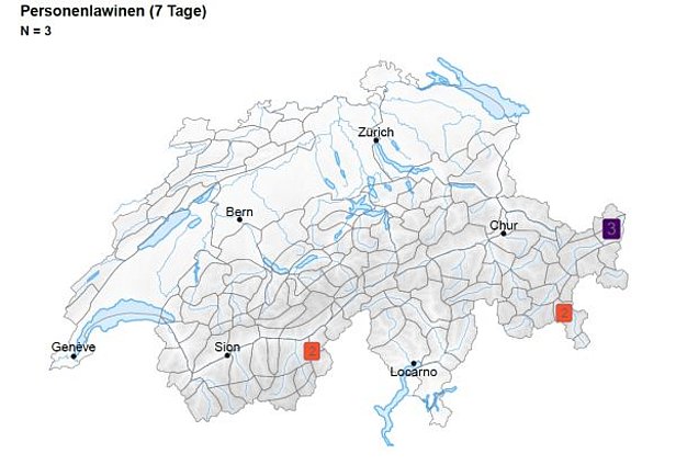 Au cours de cette semaine, trois avalanches déclenchées par des personnes ont été signalées (cf. figure 10). Il s’agissait de déclenchements dans la neige ancienne mouillée.
