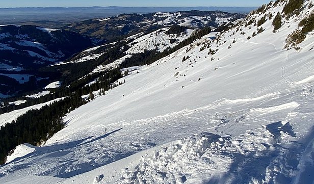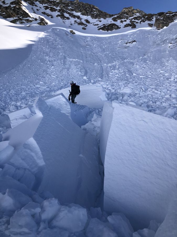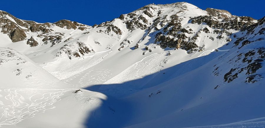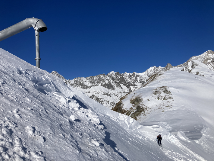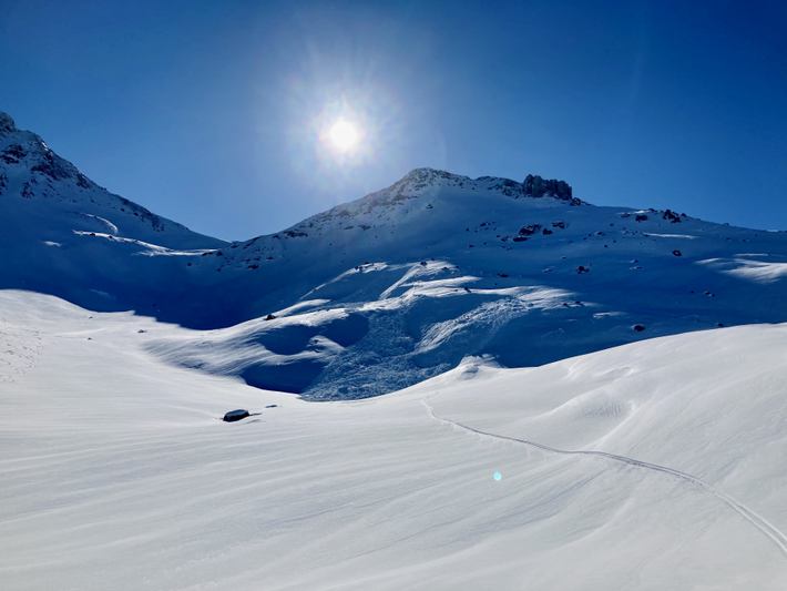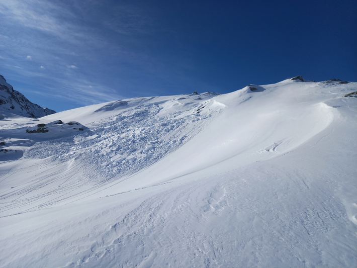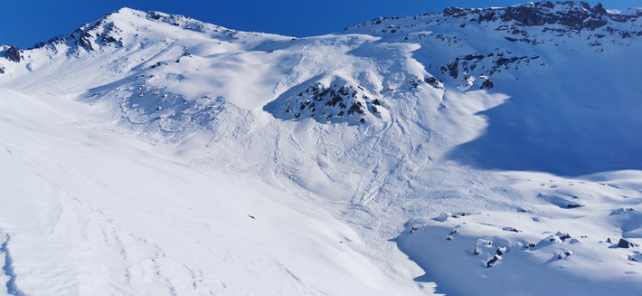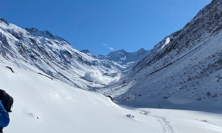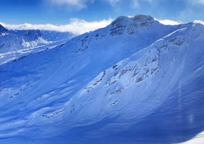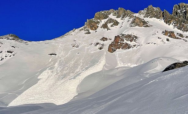 En l’espace de deux jours, l‘isotherme zéro degré est montée de près de 3000 m, passant de 700 m le lundi à environ 3500 m le mercredi. Sous l’influence du réchauffement et de l’ensoleillement, des avalanches humides sporadiques se sont décrochées sur les pentes ensoleillées.