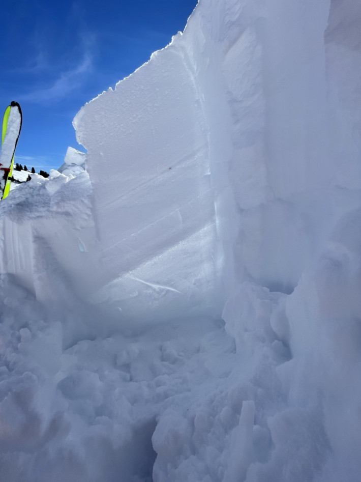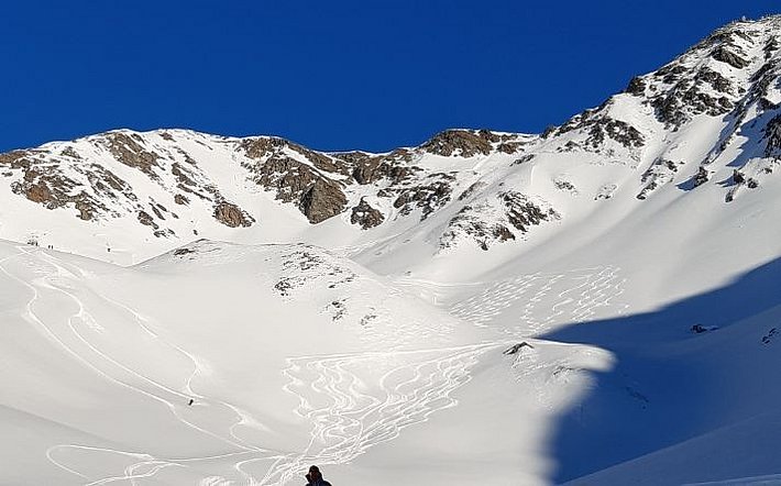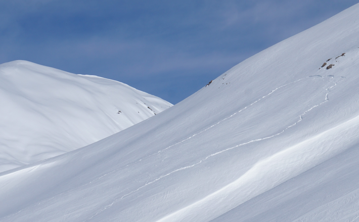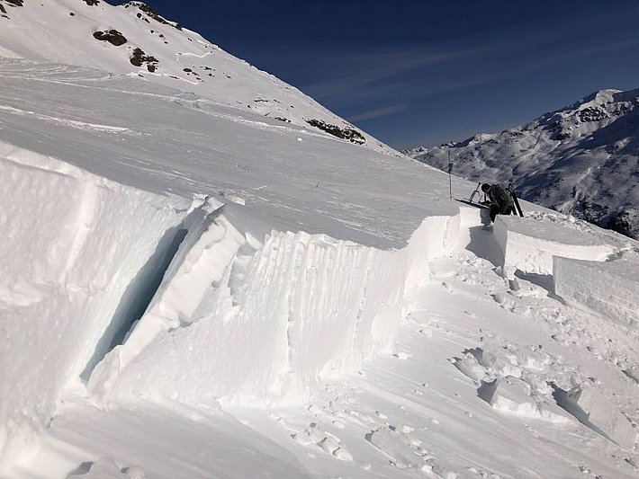 Les accumulations de neige soufflée parfois volumineuses formées sous l’influence du vent tempétueux se stabilisaient de plus en plus. La situation était dès lors toujours généralement dominée par la problématique marquée de la neige ancienne, en particulier dans le sud du Valais et dans les Grisons. Des déclenchements à distance par des personnes étaient toujours possibles (cf. photos 7 et 8).