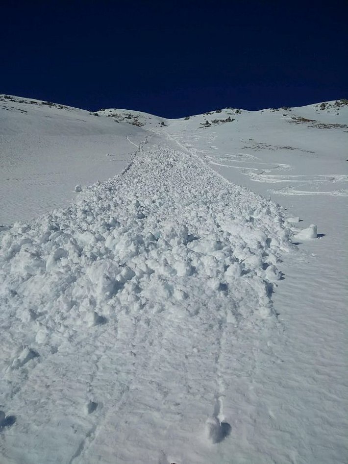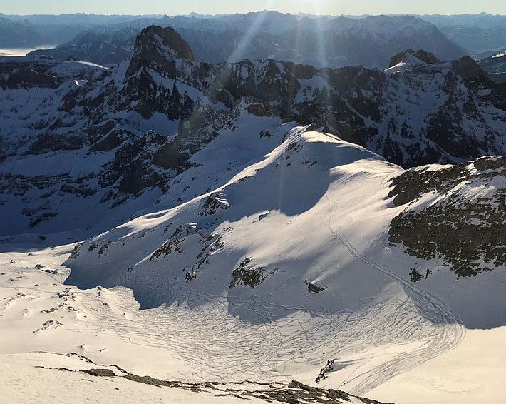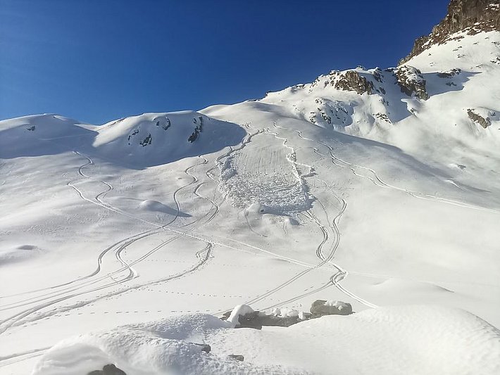 Les déclenchements d’avalanches donnaient une tout autre image, beaucoup plus positive: Tout au long de la période couverte par le rapport hebdomadaire, on n’a enregistré que quelques avalanches isolées déclenchées par des personnes (cf. photo 4). Le peu d’avalanches combiné aux nombreuses informations positives en provenance du terrain explique pourquoi du dimanche 16 janvier jusqu’au mercredi 19 janvier, un faible danger d’avalanches (degré 1) a été annoncé dans l’ensemble de la Suisse.