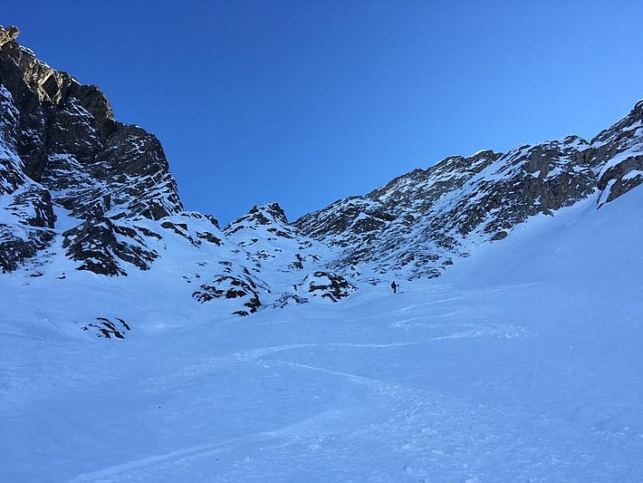 La surface neigeuse était très variable: Cette semaine, toutes les caractéristiques étaient présentes, depuis la surface travaillée par le vent et dure jusqu’à une surface poudreuse. La formation de neige soufflée était restreinte, malgré le vent parfois fort, parce qu’après les périodes venteuses précédentes, il n’y avait plus désormais de neige pouvant être déplacée par le vent. En raison de la métamorphose constructive de la neige, il y avait certes de la neige de plus en plus meuble, en particulier sur les pentes éloignées des crêtes, mais à ces endroits le vent n’était généralement pas très fort, de sorte que ce n’était que localement qu’il pouvait déplacer de la neige. Sous l’influence du front froid et avec la neige fraîche à la fin de la période sous revue, le problème dû à la neige soufflée s’est à nouveau aggravé. La neige soufflée s’était déposée sur une surface neigeuse meuble et était dès lors instable.