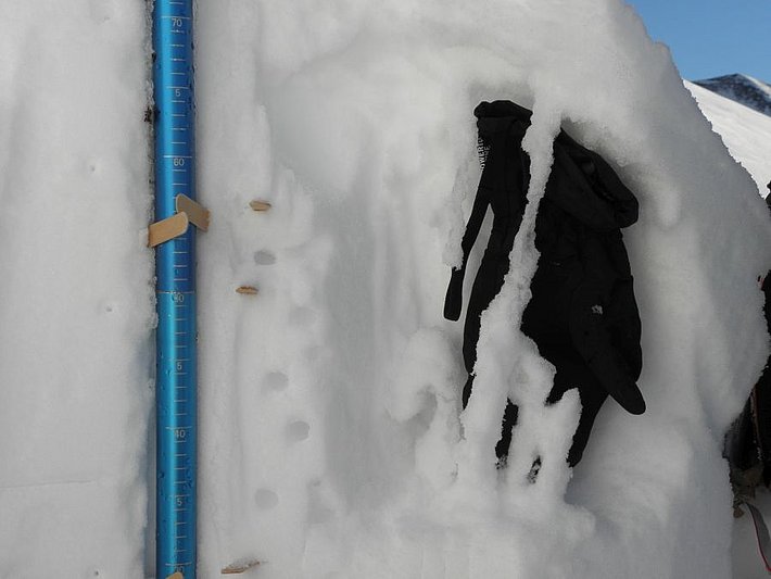 Malgré la situation actuellement généralement favorable, le manteau neigeux ne constitue pas une bonne base pour les prochaines fortes chutes de neige: La surface neigeuse métamorphosée et le givre de surface présent en de nombreux endroits (cf. photo 5) peuvent potentiellement se transformer en couches fragiles typiques.