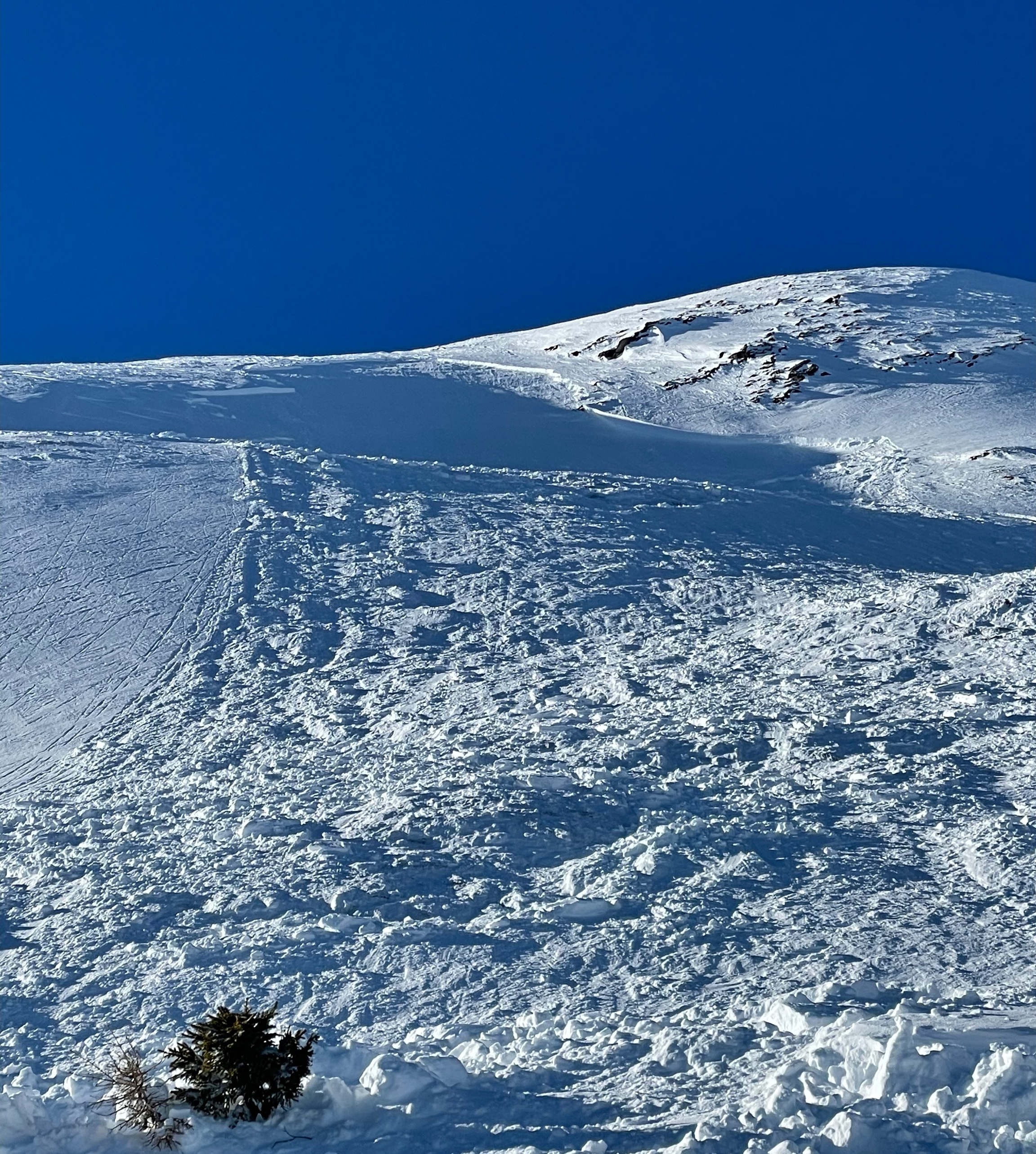 Les déclenchements d’avalanches donnaient une tout autre image, beaucoup plus positive: Tout au long de la période couverte par le rapport hebdomadaire, on n’a enregistré que quelques avalanches isolées déclenchées par des personnes (cf. photo 4). Le peu d’avalanches combiné aux nombreuses informations positives en provenance du terrain explique pourquoi du dimanche 16 janvier jusqu’au mercredi 19 janvier, un faible danger d’avalanches (degré 1) a été annoncé dans l’ensemble de la Suisse.